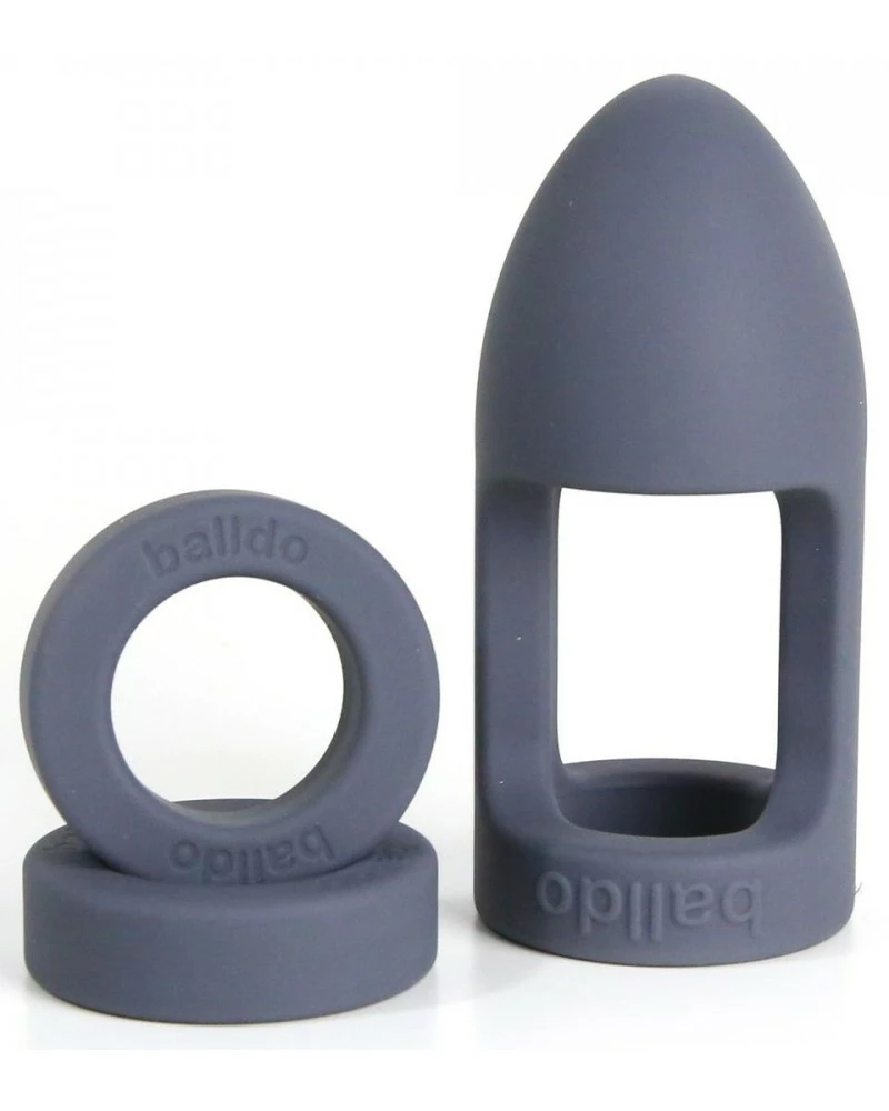 Ce ballstretcher en silicone Balldo est un accessoire original se plaçant sur les testicules et permettant de les stimuler.Avec une forme de pointe et une hauteur de 10.5cm.L’anneau a un diamètre de 30mm.Le poids est de 100 grammes. Avec 2 anneaux de 30mm de diamètre supplémentaires pour placer sur le sexe ou sur les bourses.