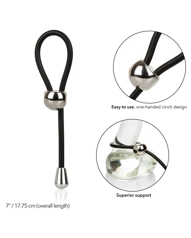Ce cockring lasso E-Z Cinch est un accessoire idéal pour serrer la base du pénis facilement. Il permet de rendre l’excitation plus dure et durable.Avec un cordon en silicone et la bille en métal pour serrer