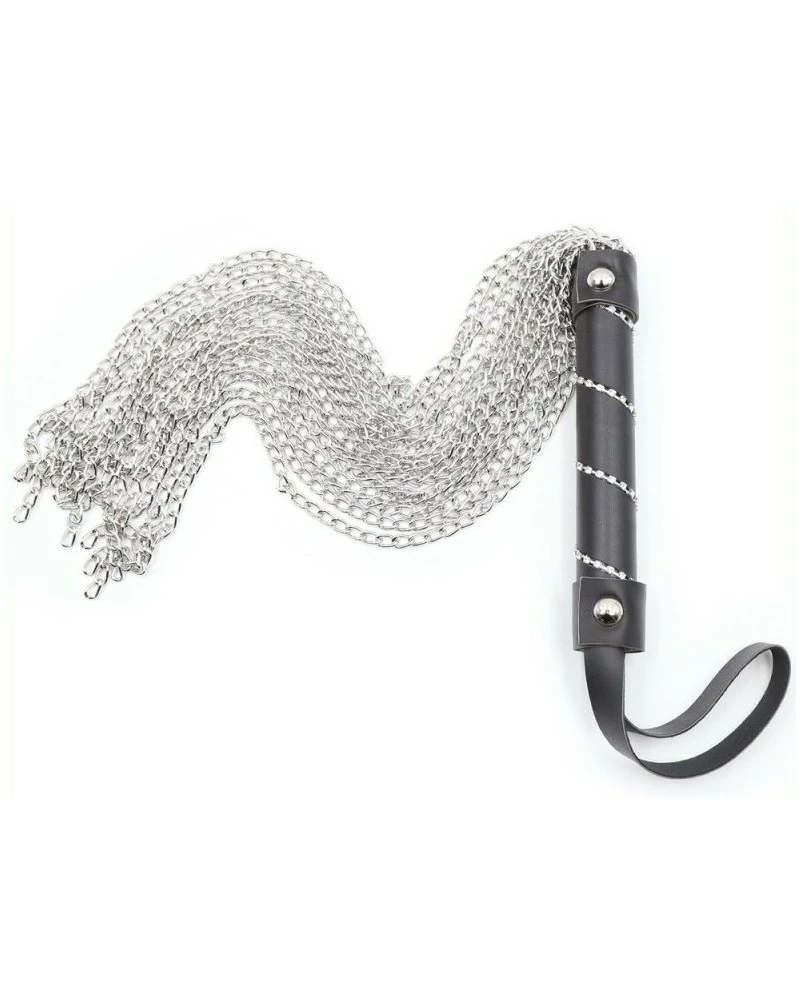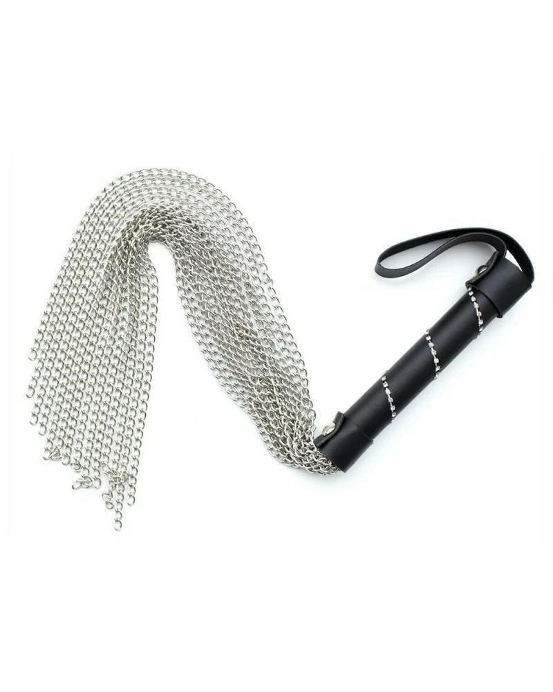 Le martinet Diam Flog est un accessoire conçu avec des lanières en métal.Elles mesurent 32cm et viennent caresser la peau ou la fouetter.Le manche est noir avec des strass brillants sur les pourtour. Longueur totale de 50cm. En simili (polyuréthane)