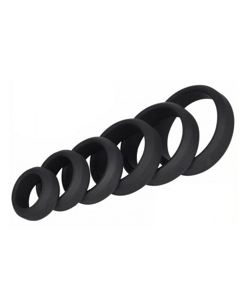 Acheter Le Lot de 6 cockrings Silicone Hyperion Noir sur La Boutique du Hard