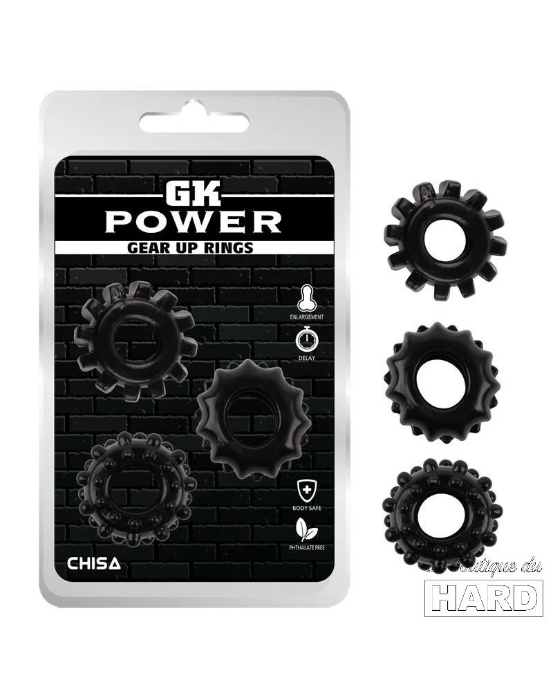 Le Lot de 3 Cockrings souples Gear Up Noirs est un cockring façonné par GK Power. Sa composition en fait un jouet d’exception. Ce sera un moment de plaisir frénétique en duo d’utiliser ces cockring.
