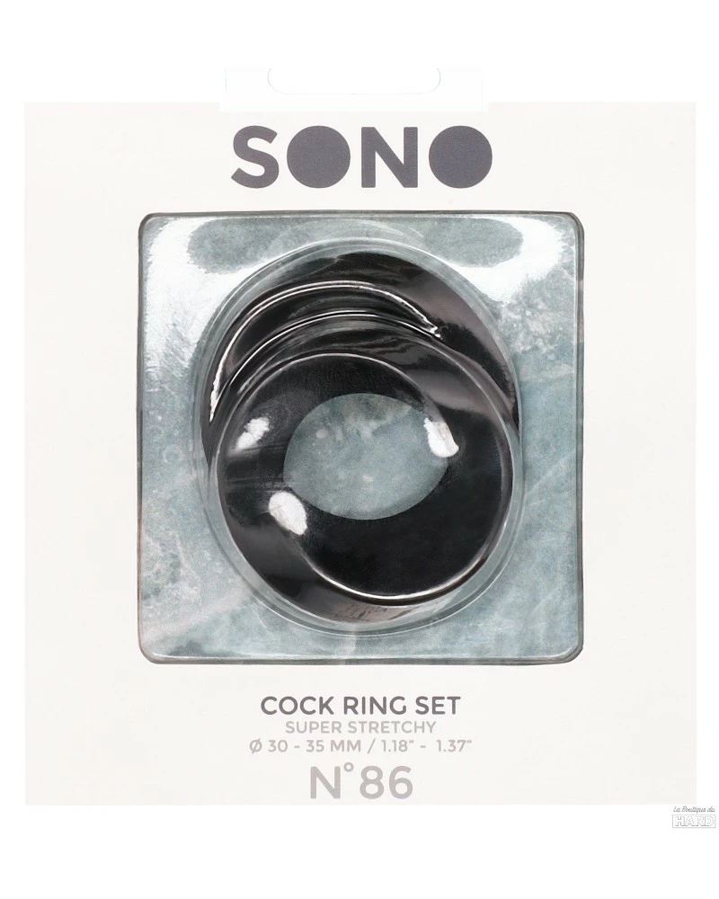 Ce lot de 2 cockrings de la marque Sono est composé de 2 anneaux péniens à la forme torsadée.Ils ont des diamètres intérieurs de 30 et 35mm. Matière silicone douce et agréable à porter