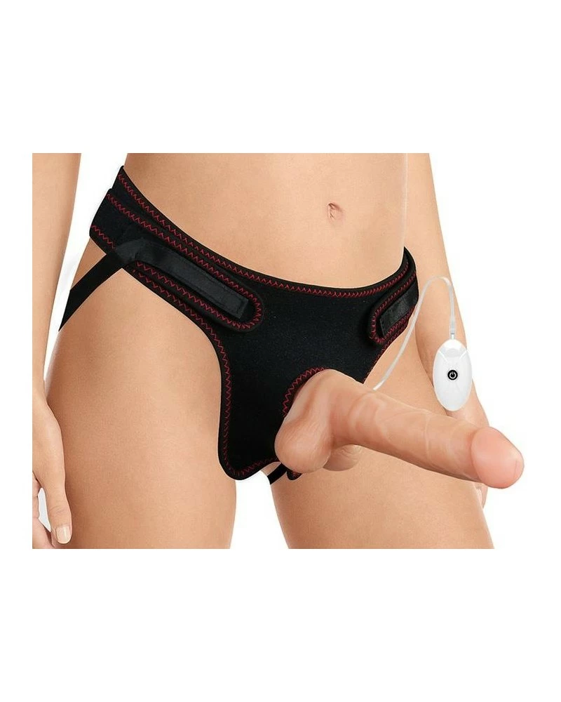 Ce gode ceinture vibrant de la gamme Easy Strap-on est un sextoy conçu avec un gode de 15 x 4cm en TPE. Il se place facilement sur le harnais et apporte des sensations intenses.Le harnais est élastique et ajustable. Le gode dispose de 10 modes de vibrations (avec télécommande filaire)