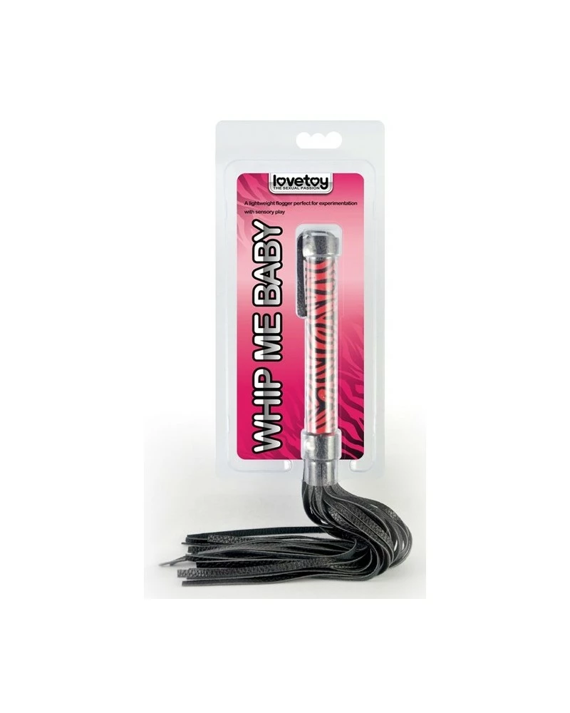 Le martinet Whip Me Baby de la marque LoveToy est un sextoy composé de lanières fines et souples de 23cm. Elles caressent la peau ou fouettent les fesses pour vivre des moments de soumissions intenses. Avec un manche zébré noir et rouge. Longueur totale de 38cm. En simili ¬†