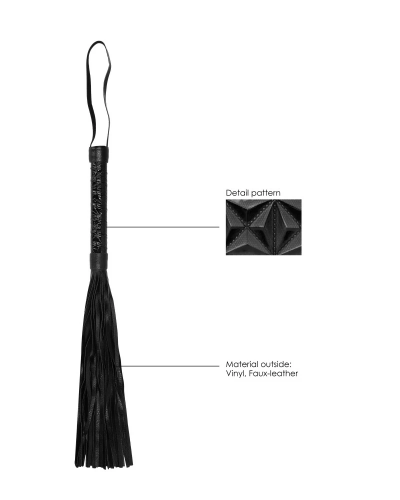Ce martinet de la marque Ouch! est un accessoire pour les jeux de soumission qui permet d’augmenter les sensations.Il est composé de lanières de 24cm de long qui viennent frapper la peau et les fesses. Le manche mesure 14cm et possède un cordon pour la prise en main.Réalisé en matière simili (polyuréthane)