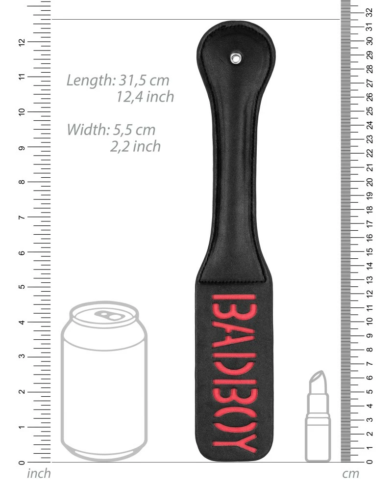 Ce paddle en simili est un accessoire idéal pour les fessées.Il est composé d’une longueur totale de 32cm et d’une largeur de 5.5cm. Il possède l’inscription « Badboy » en creux. Fabriqué en polyuréthane