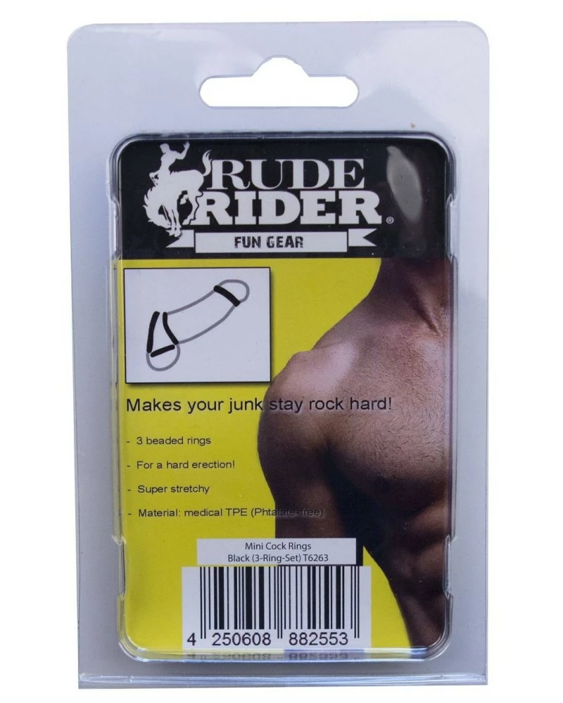 Le Pack de 3 mini cockrings souples noirs est un cockring élaboré par Rude Rider. Sa composition crée un article exceptionnel. Ce sera un moment d’euphorie violent en groupe de manipuler cet engin.