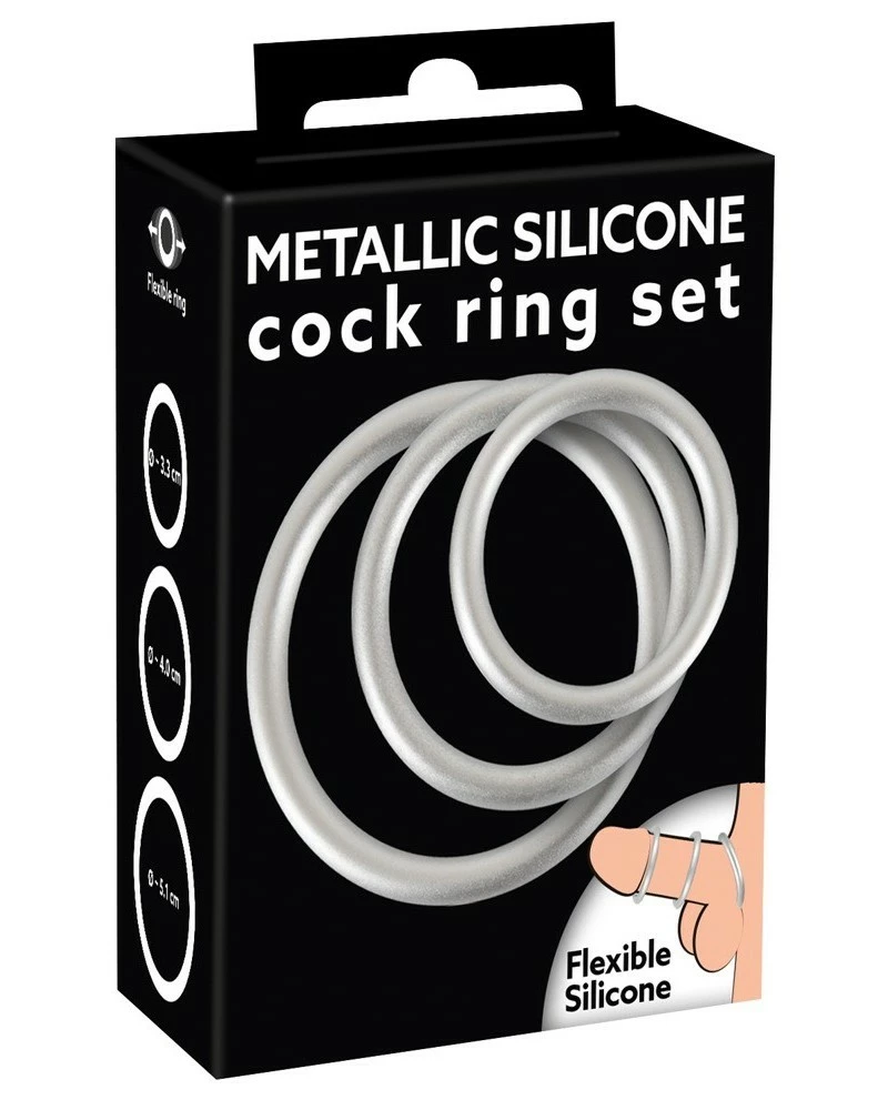 Voilà 3 cockrings en silicone de couleur gris métallique idéals pour serrer le pénis. Ils renforcent alors l’érection pour des jeux sexuels plus longs et intenses.Avec une épaisseur discrète de 6mm. Les diamètres sont de 33mm, 40mm et 51mm.Matière extensible